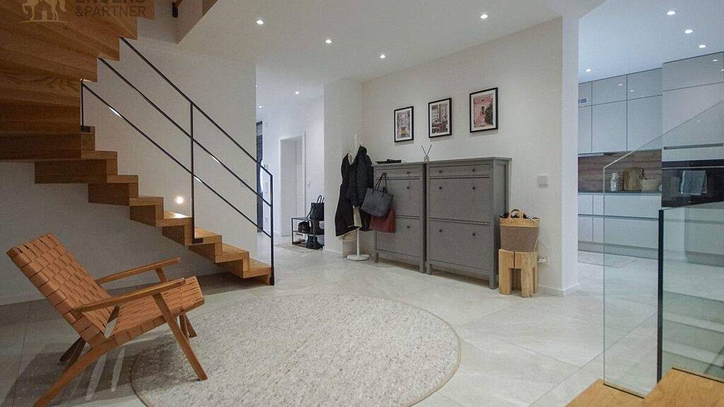Die Beheizung erfolgt über eine moderne Luft-Wasser-Wärmepumpe und sorgt für energieeffizientes sowie zukunftsorientiertes Wohnen. Hochwertige Fliesen- und Parkettböden schaffen ein stilvolles und zugleich behagliches Wohnambiente.