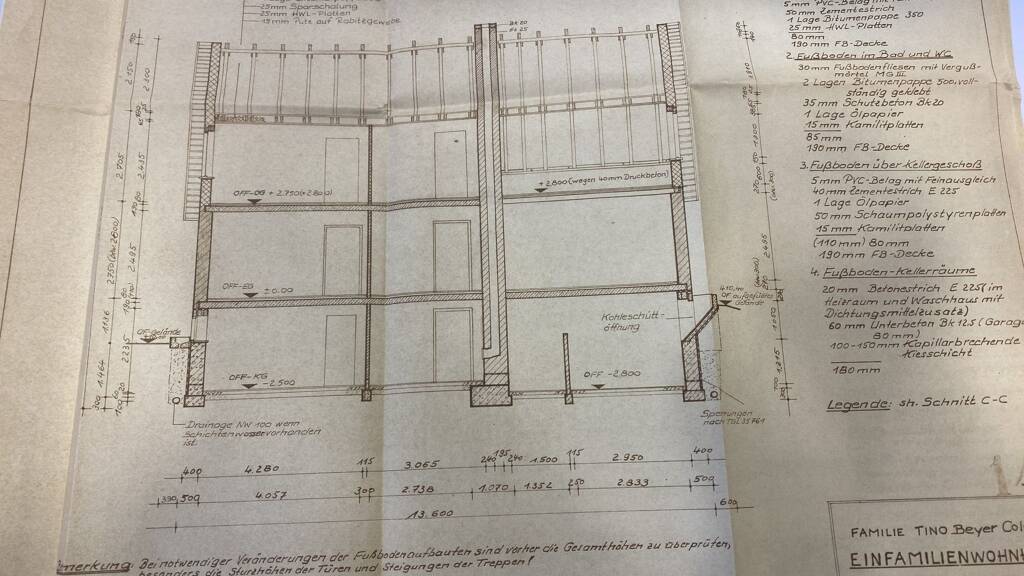 Fußböden EG gefliest, OG Laminat und Linoleum/PV