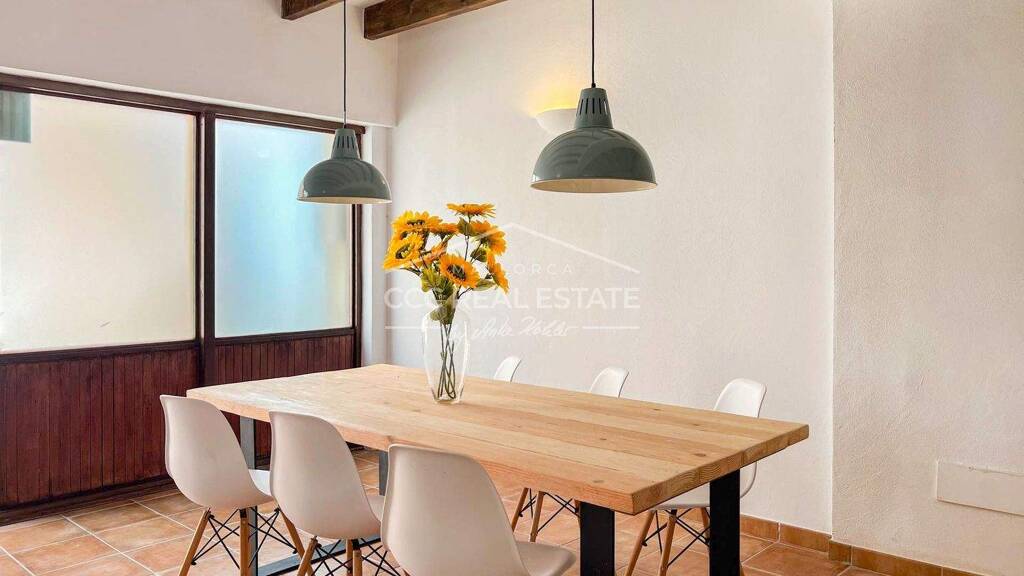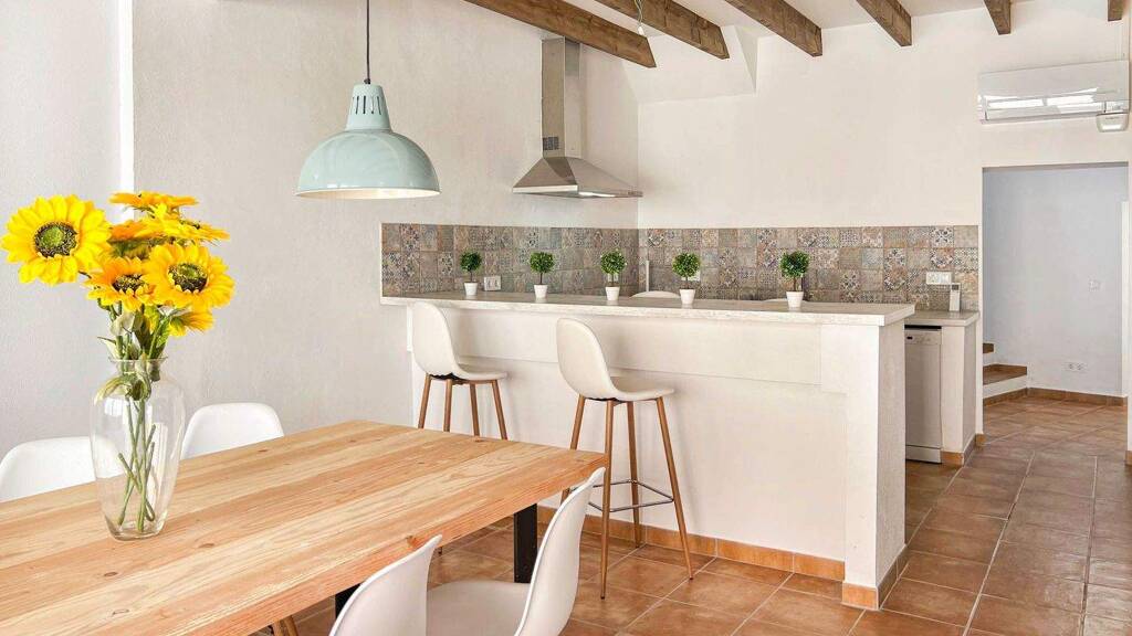 Das Stadthaus wurde im traditionellen mallorquinischen Stil renoviert und besticht durch zahlreiche charakteristische Elemente wie Natursteinwände, Fliesenböden in Terrakotta-Optik und sichtbare Holzbalken. Diese Details verleihen dem Haus einen einzigartigen Mix aus modernem Komfort und nostalgischem Charme.