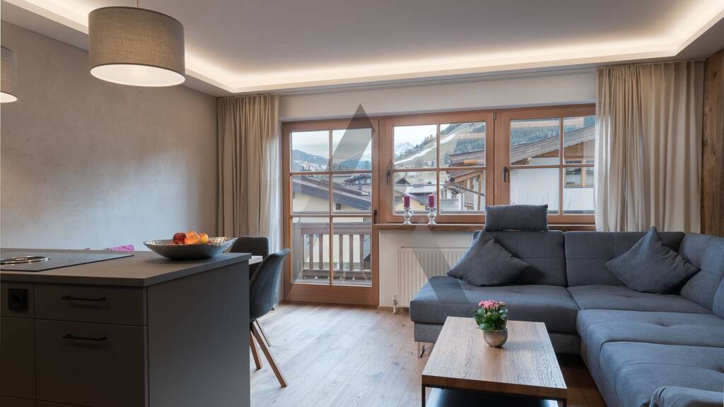 Die Wohnung wurde mit hochwertigen Materialien und komplett im modern-alpinen Stil ausgebaut und verfĂĽgt ĂĽber einen perfekt ausgestatteten Wohn-/Essbereich mit moderner KĂĽche, ein groĂźes Schlafzimmer sowie ein Badezimmer. Sowohl vom Wohnbereich als auch vom Schlafzimmer gelangen Sie auf den groĂźen SĂĽdbalkon mit Blick auf den GroĂźen Rettenstein.