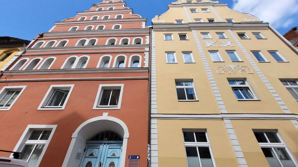 Unweit des Hafens, ganz in der Nähe des Alten Marktes in einem denkmalgeschützten Haus, befindet sich unsere angebotene Wohneinheit. Hier sind Mieter willkommen, die keine Scheu vor Touristen haben - die Fährstraße ist ein beliebtes Fotomotiv und gut besucht. Vor den Fenstern ist Bewegung... Hinter zwei historischen Giebeln versteckten sich 41 Wohnungen, gut verteilt im geräumigen, großzügig gestalteten Treppenhaus.