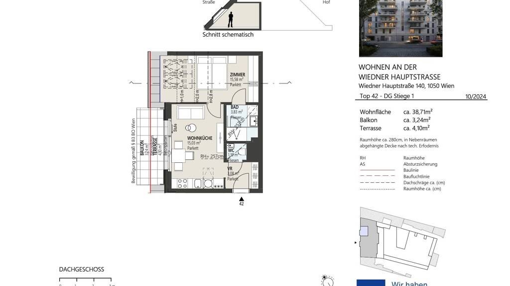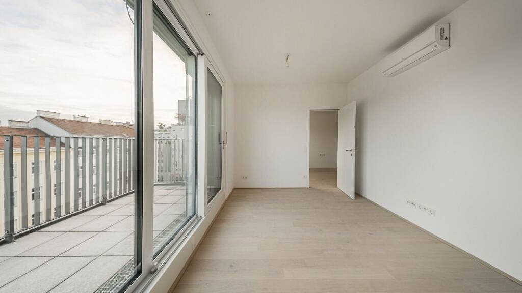 Vom einladenden Vorraum aus gelangen Sie direkt in die offen gestaltete Wohnküche, die durch ihre Helligkeit und den direkten Zugang zur Terrasse besticht. Die Terrasse rundet das Raumangebot perfekt ab und lädt zum Verweilen im Freien ein mit Blick über die Dächer und einem Gefühl von Freiheit mitten in der Stadt.