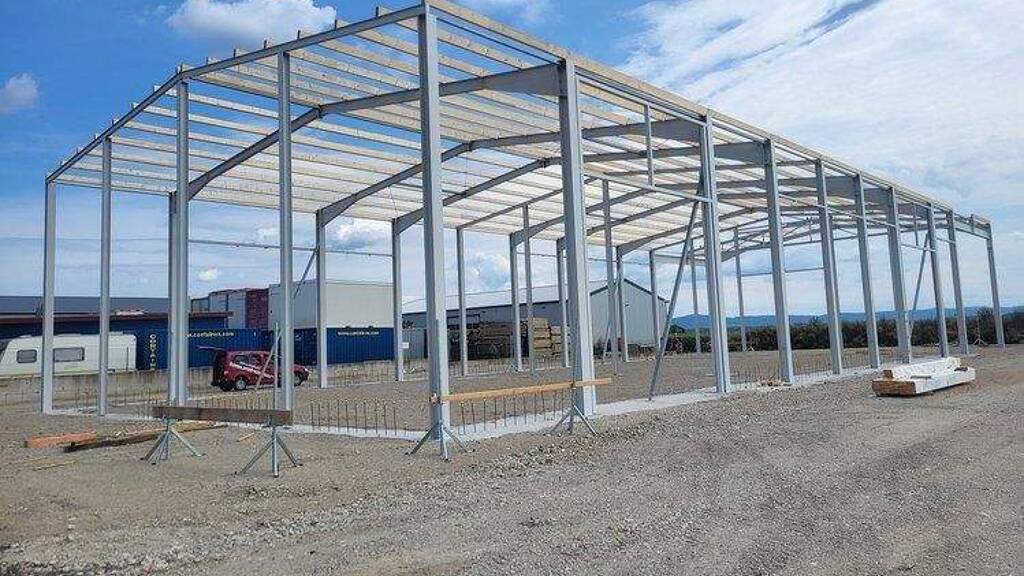 Besonderheiten: stirnseitig 10m Vordach mit Fachwerkbinder auf Ăśberlagen, Zwischenwand in der Halle, viel Tageslicht durch hohe Fenster und die Tore