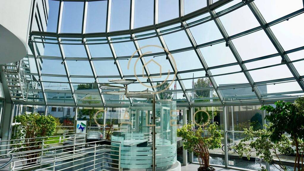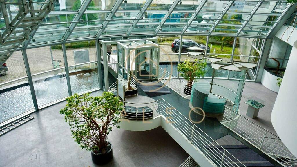 Die mit Naturstein ausgelegten, mehrgeschossigen Foyers vermitteln einen sehr repräsentativen Charakter. Für ein weiteres angenehmes Ambiente sorgen viele Pflanzen sowie jeweils 1 Wasserbecken im und vor dem Gebäude ""Martin-Behaim-Str. 4"". In diesem Gebäude befindet sich im 1.OG auch eine öffentlich betriebene Kantine, die entgeltlich genutzt werden kann.