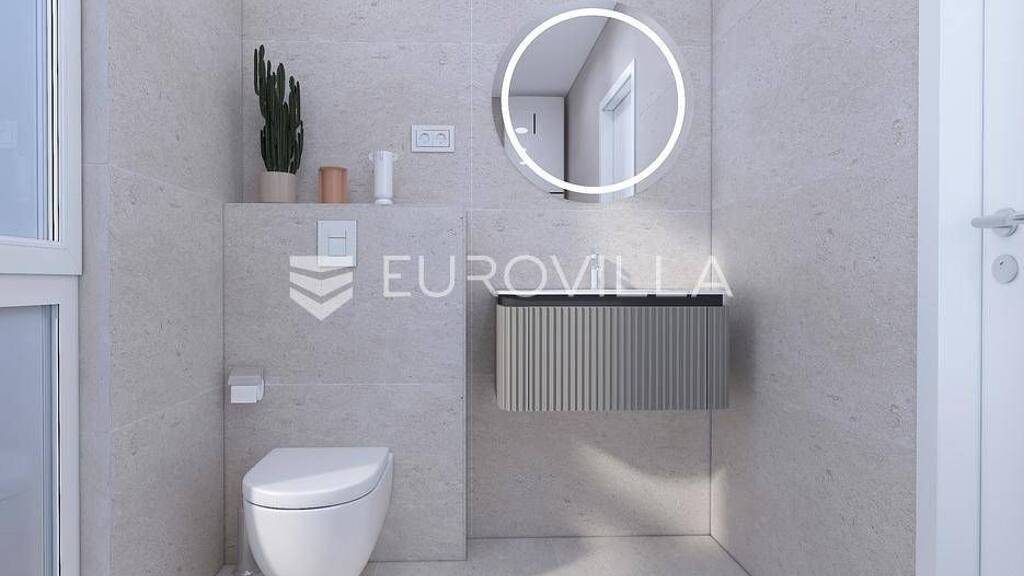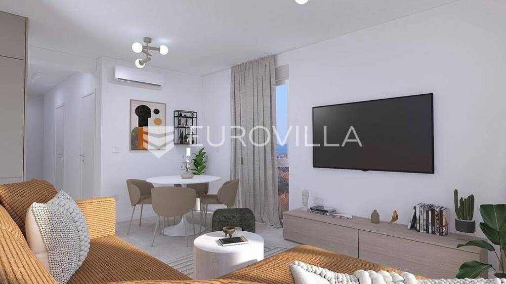 Iznajmljuje se vrhunski, luksuzno opremljen jednosobni stan u modernoj novogradnji na Visnjiku - jednoj od najpozeljnijih lokacija u Zadru. Smjesten na 4. katu suvremene zgrade s liftom, stan nudi idealan balans izmedu urbanog nacina zivota i potpune udobnosti, uz neposrednu blizinu svih vaznih sadrzaja poput trgovina, skola i sportskih objekata.Unutarnji prostor povrsine 41,84 m² pazljivo je osmisljen s naglaskom na prozracnost i obilje prirodnog svjetla, sto omogucuju velike staklene stijene. Sastoji se od elegantno uredenog dnevnog boravka povezanog s blagovaonicom i kuhinjom (23,30 m²), udobne spavace sobe (9,78 m²), suvremene kupaonice (5,00 m²) te prostrane lode (5,40 m²), idealne za opustanje. Podno grijanje postavljeno je u kupaonici, kuhinji i dnevnom boravku, dok multi-split klimatizacijski sustav u svim prostorijama osigurava ugodnu temperaturu tijekom cijele godine.Za dodatnu sigurnost pobrinuta su protuprovalna i protupozarna ulazna vrata te video portafon. U cijenu najma ukljuceno je jedno garazno parkirno mjesto u podzemnoj etazi, uz mogucnost najma dodatnog parkirnog mjesta ili spremista uz nadoplatu. Lokacija je iznimno prakticna - udaljena svega 1 km od plaze i centra grada te 500 m od skole, sto omogucuje jednostavan pristup svim sadrzajima.Stan se iznajmljuje potpuno namjesten i opremljen te je spreman za prvo useljenje od 01.06.2026. Prednost ima dugorocni najam (minimalno 12 mjeseci), uz obavezan polog u visini jedne mjesecne najamnine.Za sve dodatne informacije slobodno nas kontaktirajte.... Vise na eurovilla.hr, ID: 408754