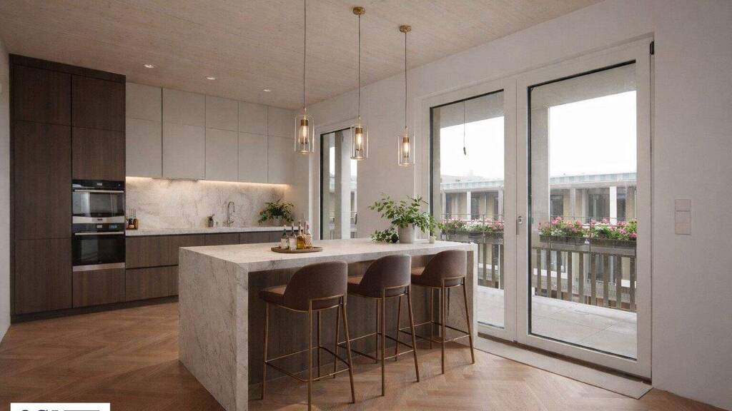 Diese stilvolle Wohnung im 5. Obergeschoß verbindet urbanes Lebensgefühl mit angenehmer Ruhe. Herzstück ist die großzügige, lichtdurchflutete Wohnküche, die direkt auf den südwestlich ausgerichteten Balkon führt. Ein Ort, der Sonne einfängt, zum Verweilen einlädt und Raum für entspannte Momente im Freien schafft - vom ersten Kaffee bis zum Abendglas Wein.