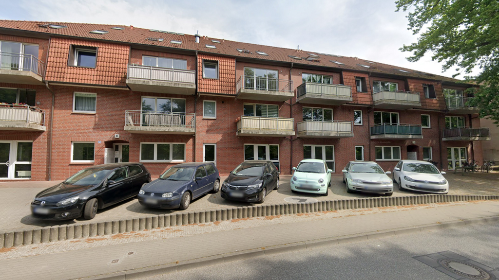 Hinter dem Gebäude sind Stellplätze und eine Fahrradgarage zu finden. Die Wohnung ist mit einer neuen Einbauküche ausgestattet.