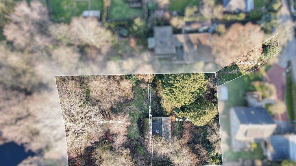 Das Grundstück ist nach Süd-West ausgerichtet und bietet mit seinem schönen, gewachsenen Baumbestand im hinteren Bereich eine idyllische und private Atmosphäre. Laut Bebauungsplan ist das Gebiet als reines Wohngebiet (WR) ausgewiesen. Zulässig sind Einzel- und Doppelhäuser mit maximal zwei Wohneinheiten, in offener Bauweise, bei einer Grundflächenzahl von 0,3 und einem Vollgeschoss. Die maximale Gebäudehöhe beträgt 12 Meter. Garagen und Nebenanlagen sind ausschließlich innerhalb der überbaubaren Grundstücksfläche zulässig.