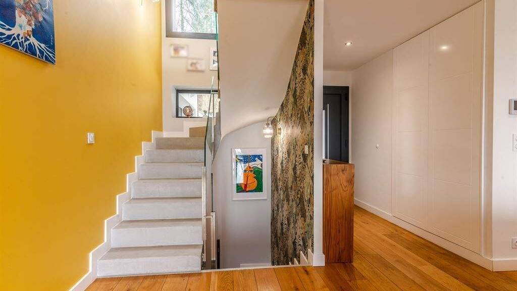 Light and airy, accommodation offers a separate kitchen, lovely luminous living room with wood stove, 5 bedrooms, an office and 4 bathrooms. Lake views from its terraces and balconies.