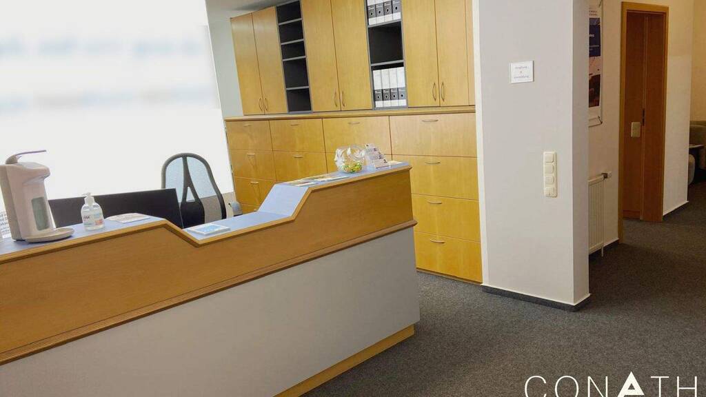 Angeboten wird ein möblierter Empfangs- & Sekretariatsbereich mit rund 2 Arbeitsplätzen, ein möbliertes Einzel-Office, Mitbenutzung möblierter Konferenzraum mit Großbildschirm, Mitbenutzung Wartebereich, Mitbenutzung Teeküche, Mitbenutzung WC-Bereich