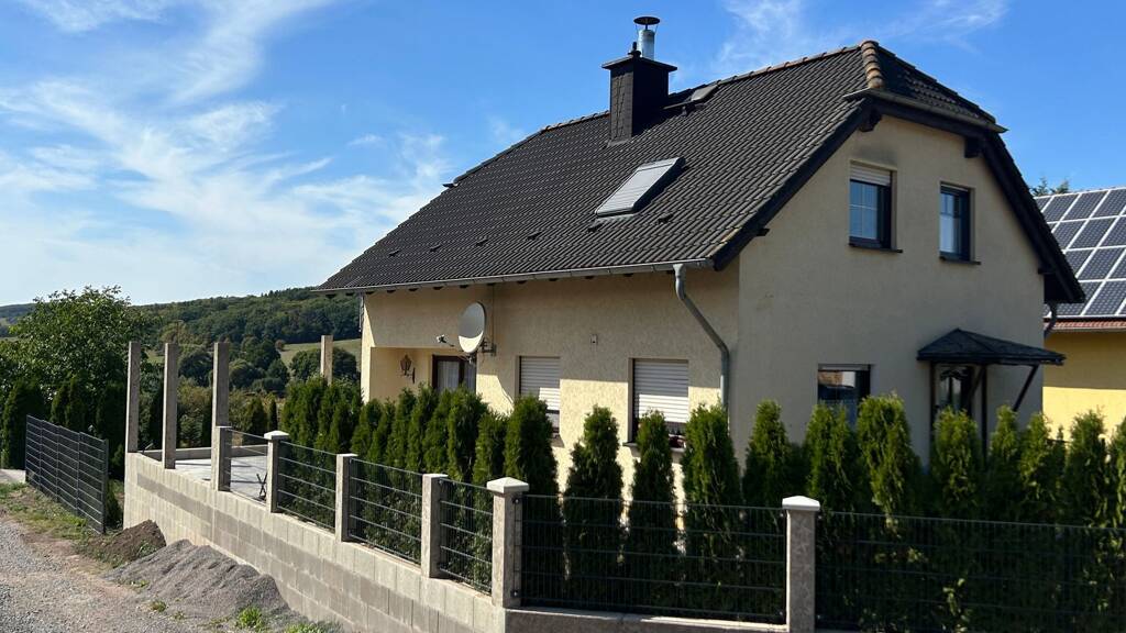 Erdgeschoss: Das Erdgeschoss empfängt Sie mit einem geräumigen Wohnzimmer, das direkten Zugang zur sonnigen Terrasse und dem Garten bietet – der perfekte Ort für entspannte Stunden und Grillabende mit Freunden. Die Küche kann nach eigenen Vorstellungen gestaltet werden. Ein Gäste-WC sowie ein Hauswirtschaftsraum vervollständigen diese Etage. Dachgeschoss: Im Dachgeschoss befinden sich die privaten Räume. Hier finden Sie ein geräumiges Schlafzimmer, zwei Kinder- oder Arbeitszimmer sowie ein modernes Badezimmer. Keller: Das Haus ist komplett unterkellert. Hier befinden sich ein Hobbyraum, ein Waschraum und weitere Abstellmöglichkeiten, die zusätzlichen Platz schaffen. Außenbereich: Die neu gebaute, große Doppelgarage bietet nicht nur sicheren Parkraum, sondern auch eine Werkstatt oder Abstellfläche für Fahrräder und Gartengeräte. Die offene, neu errichtete Terrasse lädt zum Sonnenbaden und Entspannen ein und bietet einen unvergleichlichen Blick in die Ferne. Der liebevoll angelegte Garten ist pflegeleicht und bietet dennoch genug Fläche für Spiel und Entspannung.