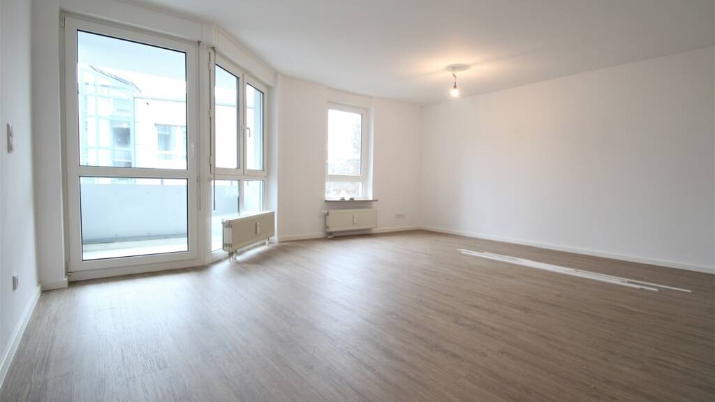 Zur Wohnungstür reinkommend, befinden Sie sich im zentralen Flur der komplett neu renovierten Wohnung. Vom Flur aus erreichen Sie alle Wohnräume, das neue Bad und die Küche. In den Wohnräumen und Flur liegt ein neuer, moderner und hochwertiger Vinylboden in Parkettoptik und der Küchenboden mit dem Abstellraum wurden mit anthrazit farbigen Fliesen neu belegt. In der Küche mit dem modernen Fliesenboden wird eine neu hochwertige Einbauküche mit weißen Fronten und allen Elektrogeräten, bis auf eine Kühlgefrierkombination eingebaut. Die Beispielplanung und zwei Bilder von der Küche sind im Exposé abgebildet. Der größere Wohnraum, der sich als Wohn- und Esszimmer eignet, bietet den Zugang zum südausgerichteten Balkon. Das von Grund auf, neu erstellte Bad mit Wanne und Duschabtrennung, Waschbecken, Handtuchheizkörper, Spiegel mit Beleuchtung und WC wurde modern weiß gefliest. Eine herrliche Wohnung für einen Ein- oder Zweipersonenhaushalt.