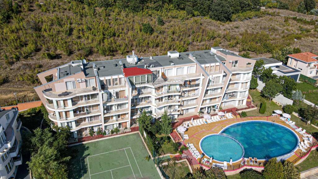 Wir präsentieren ein möbliertes Apartment mit zwei Schlafzimmern zum Verkauf, Teil eines beliebten Mini-Resorts mit Pools und Annehmlichkeiten. Der Komplex liegt mitten im Grünen der Ökoregion in der Nähe von Sonnenstrand im Dorf Kosharitsa. Es ist nur 10 Autominuten von den Stränden entfernt.