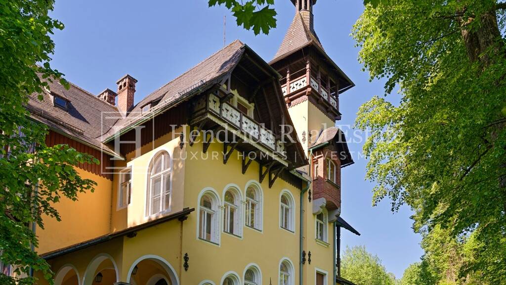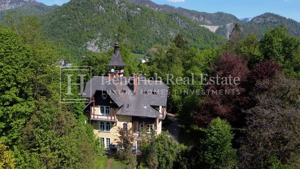 Das prachtvolle Villenanwesen aus der Jahrhundertwende zeichnet sich durch seine Alleinlage auf einer Anhöhe nahe dem Zentrum der Kaiserstadt Bad Ischl im Salzkammergut aus.