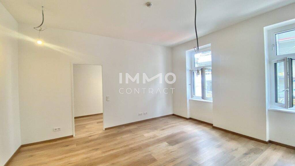 Altbau Charme komplett kernsaniert! Vom Vorraum erreicht man Bad, WC und das Wohnesszimmer mit Küche in eigener Nische und großzügigem Abstellraum/Speis. Vom Wohnesszimmer begeht man getrennt beide Schlafzimmer. Gemeinschaftsgarten mit Spielplatz.