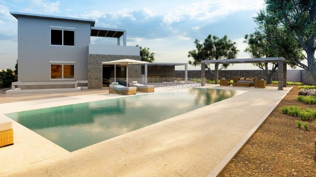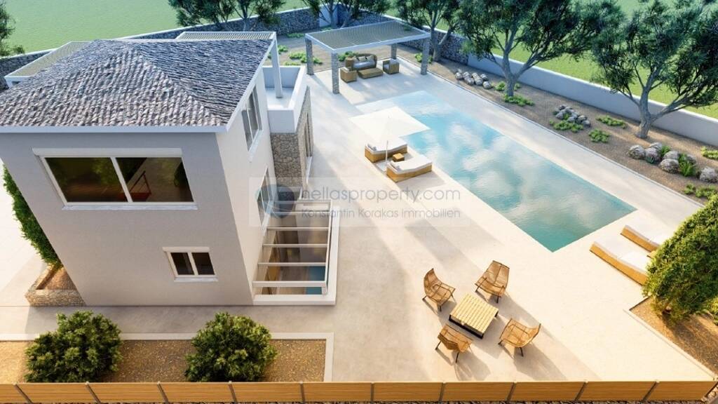 Villa mit Pool jedoch nicht fertiggestellt, moderner & traditioneller Charakter, 500 m zum Strand.