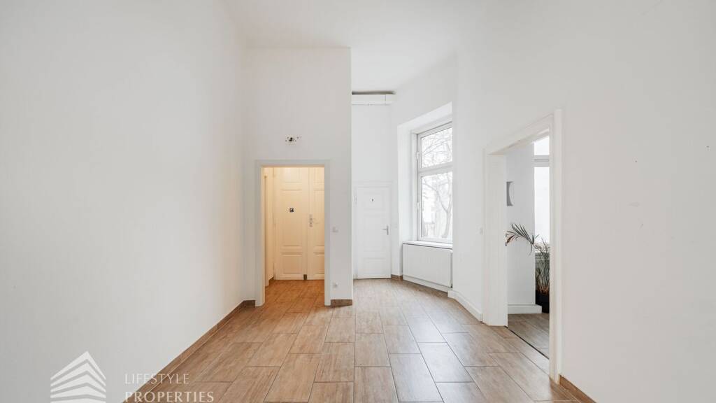 Das Objekt befindet sich im ersten Stock eines gepflegten Altbaugebäudes und weist eine Gesamtfläche von ca. 130 m² auf. Es erstreckt sich über vier Zimmer und verfügt zusätzlich über eine Garderobe. Die Räumlichkeiten sind mit einem Parkettboden und schönen großen Fliesen im Holz-look ausgekleidet. Das Bad und die separate Toilette sind ebenfalls gefliest.