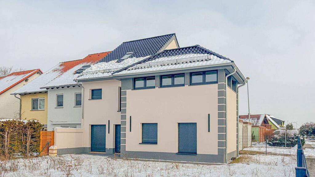 .Einfamilienhaus, Baujahr 2025 .Ca. 145 m² Wohnfläche .Ca. 500 m² Grundstücksfläche .Fußbodenheizung .Drei vollwertige Wohnetagen .Offener Wohn- und Essbereich mit Küche .Raumtiefe Fensterflächen .Elektrische Rollläden an allen Fenstern .Hochwertiger Marmorboden im gesamten Haus .Schlafzimmer im Erdgeschoss .Gäste-WC im Erdgeschoss .Drei Zimmer im 1. Obergeschoss (ein Durchgangszimmer) .Badezimmer mit Badewanne im 1. Obergeschoss .Zwei Zimmer im Dachgeschoss .Badezimmer mit Walk-in-Dusche im Dachgeschoss .Moderne Wärmepumpe .Zwei Stellplätze .Familienfreundliche, ruhige Lage