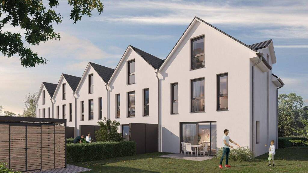 . drei massive Geschosse mit WDVS-Fassade aus Mineralwolle . ca. 144m² Nutzfläche | ca. 122 m² Wohnfläche . ca. 179m² Eigentumsgrundstück | real geteilt . Effizientes Energiesparhaus-55 & E-Mobilität bis 11KW vorbereitet . Müll-/Geräteabstellraum mit Gründach | Garten mit Zuwegung . Dreifachverglasung & elektrische Rollläden im EG, OG & DG . Fernwärmeanschluss mit Fußbodenheizung im EG, OG & DG . alle Wände & Decken mit Malerglattvlies in weiß gestrichen . Außenanlagen inkl. Zuwegung, Stellplätze, Zaun & Bepflanzung . Bewässerungsanlage und Mähroboter im Garten . Telefon & Internet per Glasfaseranschluss . DEKRA-Bauüberwachung während der Bauzeit dokumentiert . Gebäude ist fertigstellt, daher kein Fertigstellungsrisiko für Käufer