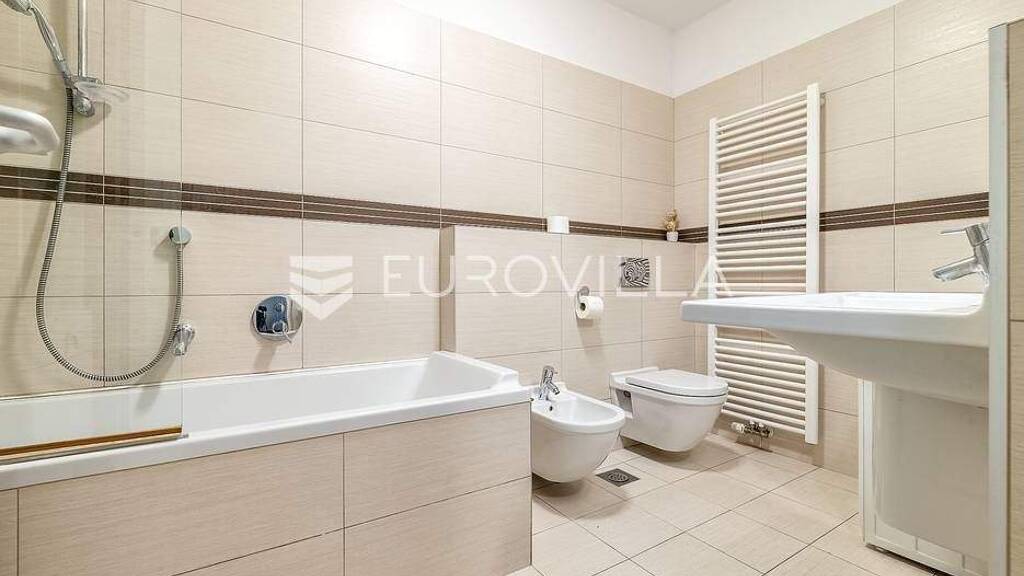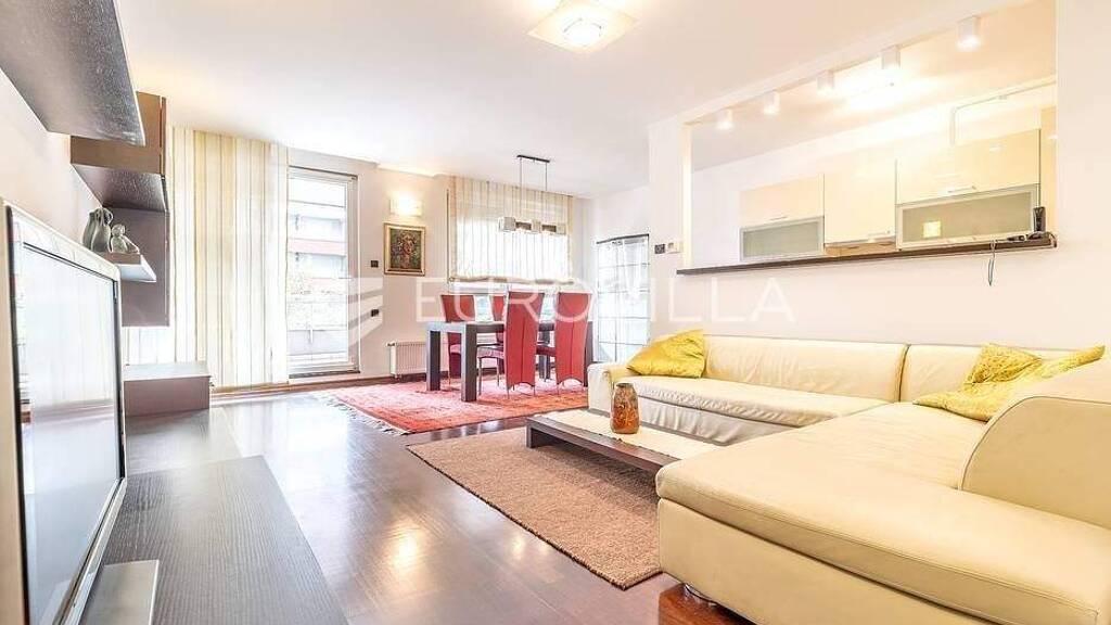 Buzanova ulica, prekrasan trosoban stan zatvorene povrsine 87 m2 s loggi-om 10 m2. Ukupno 97m2. Orijentacija istok - zapad. Veliki ugradbeni ormari u hodniku. Lijepo uredena kuhinja. Kompletno namjesten i opremljen stan.Sastoji se od hodnika, toaleta, ostave, prostrane kupaonice s kadom, dvije spavace sobe, walk-in garderobne sobe, loggie te velikog dnevnog boravka s kuhinjom i blagovaonicom. Stanu pripada jedno parkirno mjesto u garazi koja je u blizini zgrade. Nalazi se u blizini trznice Kvatric, tramvaj zone, skole, vrtica, park sume Maksimir te strogo centra grada.Ostale informacije na upit.... Vise na eurovilla.hr, ID: 370320