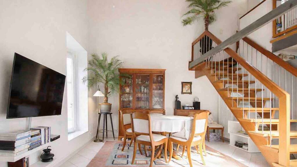 Die offene, loftartige Aufteilung macht die Wohnung flexibel nutzbar - der obere Bereich eignet sich ideal als Schlafraum, während der Wohnbereich großzügig und einladend gestaltet ist. Die Küche fügt sich harmonisch ins Raumkonzept ein und lädt zum Kochen und Verweilen ein. Das Badezimmer verfügt über eine Badewanne und bietet einen gemütlichen Rückzugsort.