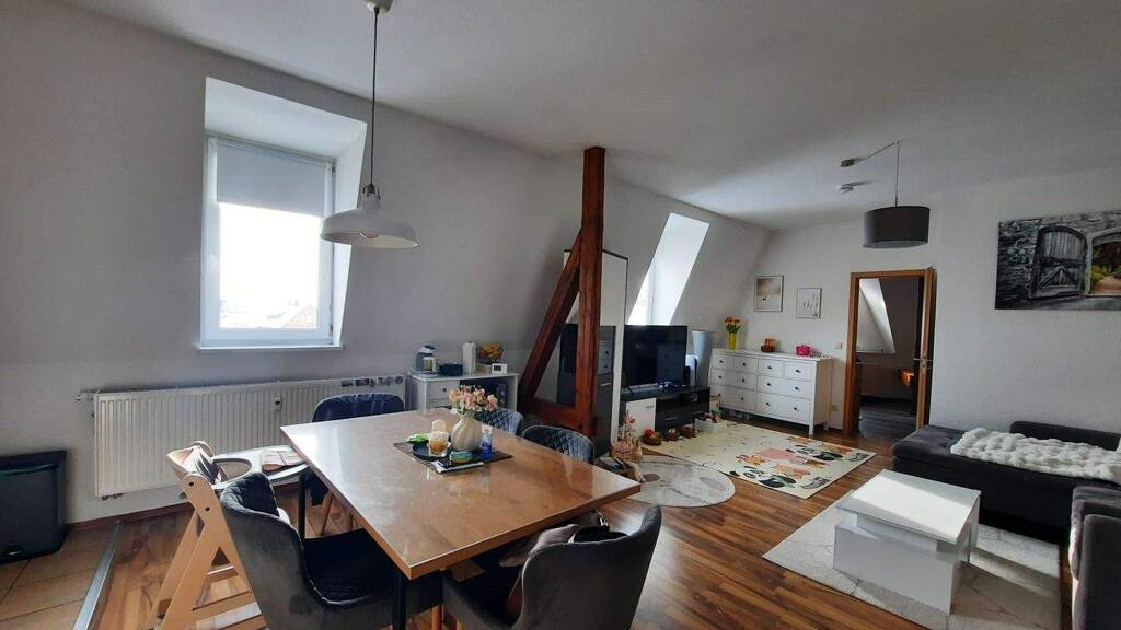 Es handelt sich um ein liebevoll saniertes Mehrfamilienhaus mit insgesamt 6 Wohneinheiten. Die zu vermietende Wohnung befindet sich im 2 OG. Die 66 qm Wohnfläche sind sehr gut aufgeteilt. Ein großer Wohn- und Essbereich, ein geräumiges Schlafzimmer und ein modernes Badezimmer könnten bald Ihr neues zu Hause sein. Die vorhandene Einbauküche kann gern vom Vormieter erworben werden. Ein abgeschlossener Hof kann von allen Mietern gemeinschaftlich genutzt werden. Die Pflege des Hofes übernehmen die Mieter gemeinschaftlich. Die Treppenhausreinigung wird über eine Hausordnung durch die Mieter erledigt.