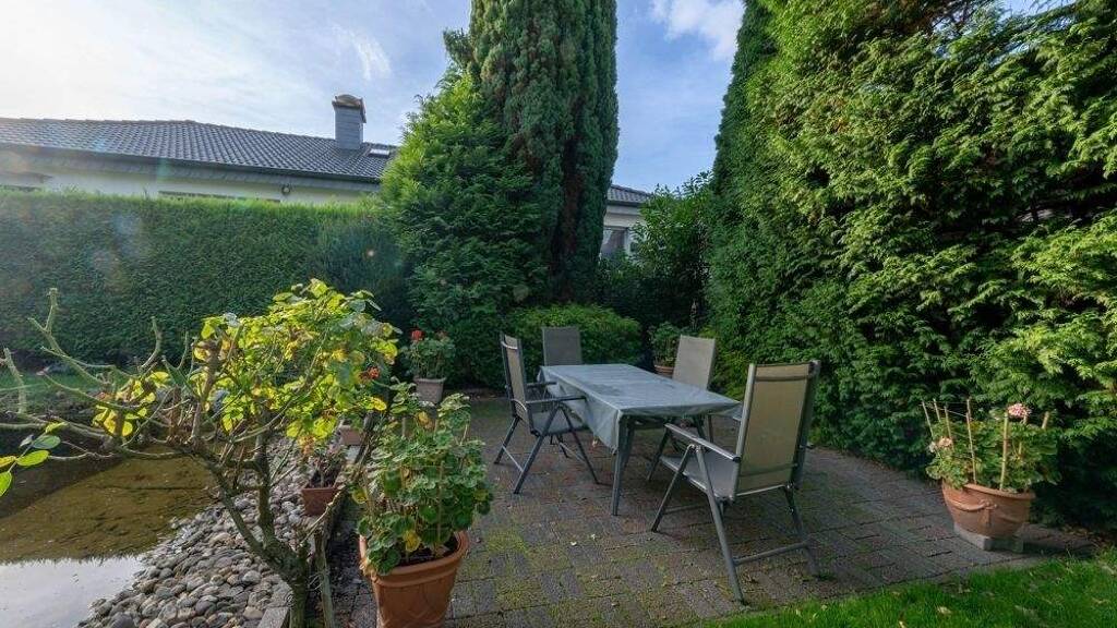 Im rückwertigen Bereich der Liegenschaft befindet sich ein herrlicher Garten mit Teich, Swimmingpool, großem Freisitz sowie einem Gerätehaus.