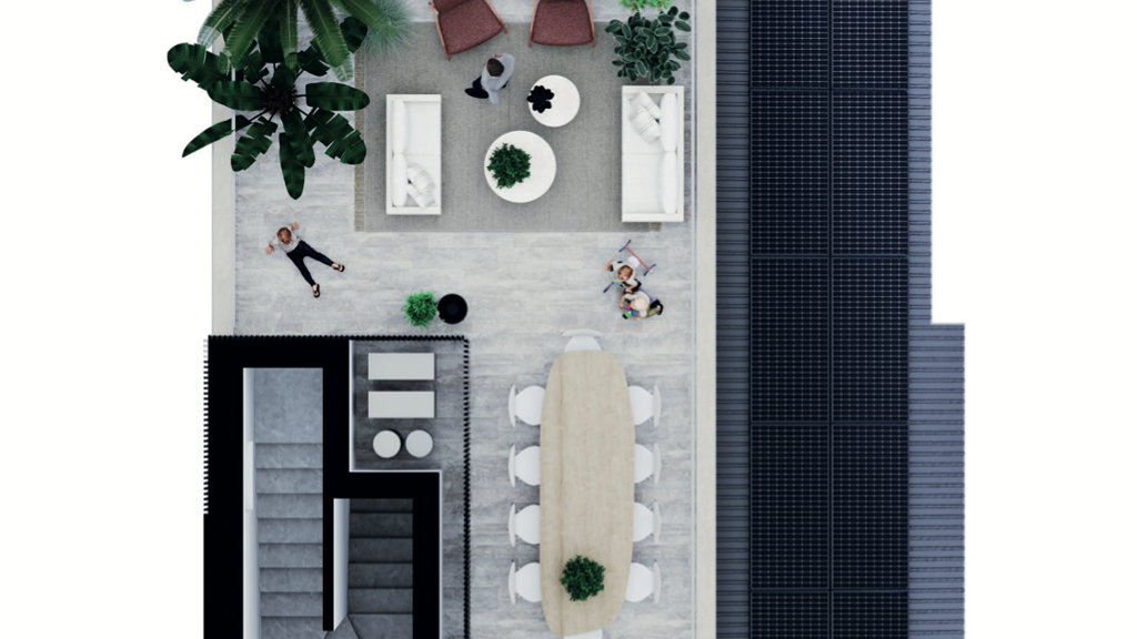 Beim Betreten des Hauses gelangen Sie direkt in den großzügigen Wohn- und Essbereich, der mit einer offenen, modernen Küche kombiniert ist und eine einladende Atmosphäre schafft. Das Erdgeschoss bietet zudem ein separates Gäste-WC, das zusätzlichen Komfort bietet.