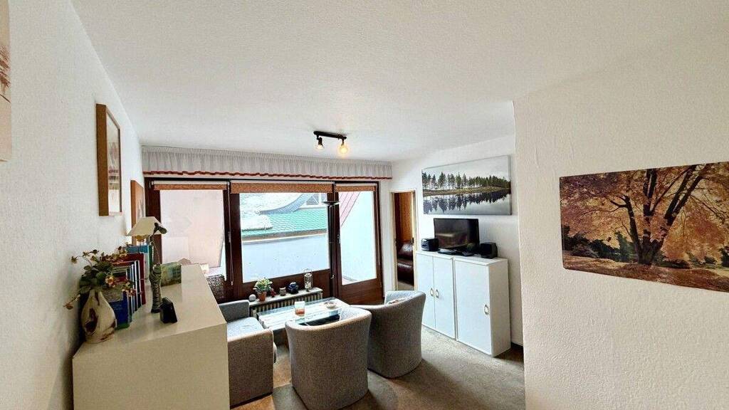 Ebenfalls vom Flur aus erreichen Sie das großzügige Wohn-, Ess- und Schlafzimmer. Der helle Wohnraum bietet ausreichend Platz für Wohnen, Schlafen und Essen in einem harmonischen Gesamtbild. Von hier aus haben Sie Zugang zum schönen Balkon - perfekt für entspannte Stunden im Freien.