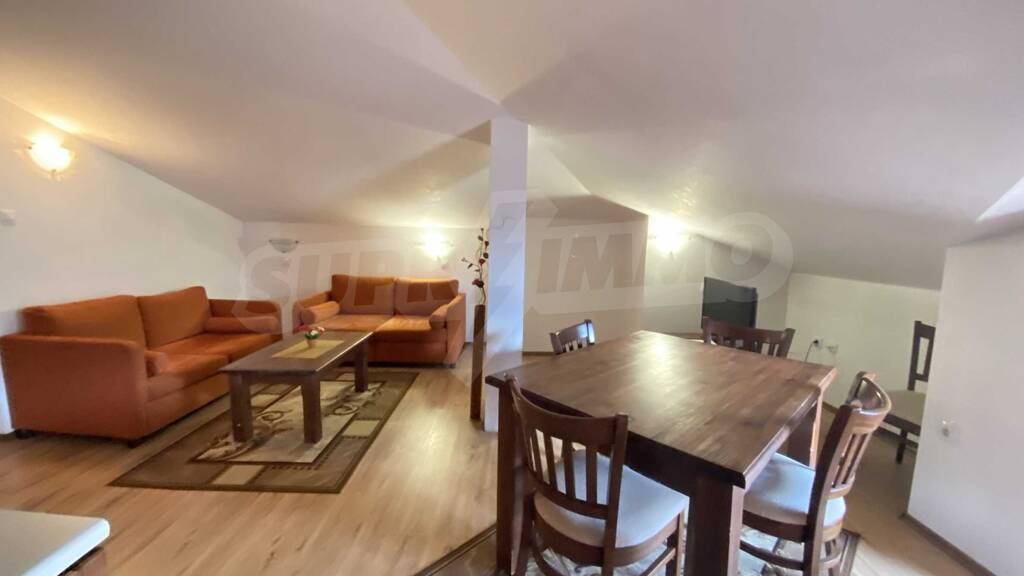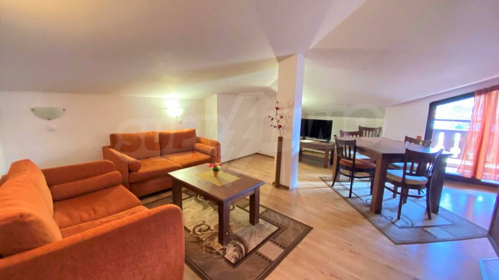 Wir präsentieren Ihnen ein wunderschönes Ferienhaus im viertletzten Stock eines eleganten Komplexes am Fuße des Pirin-Gebirges, nur 200 Meter von der Startstation und 150 Meter vom Eingang zum Pirin-Park entfernt.
