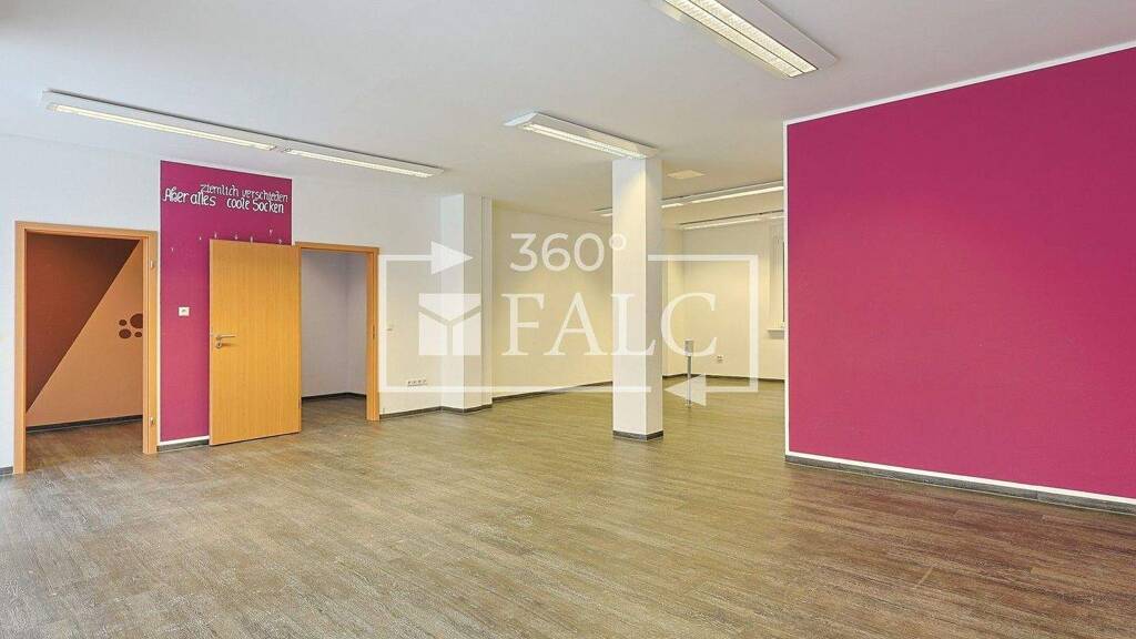 Ergänzend stehen ein separater Nebenraum sowie ein Abstell- bzw. Lagerraum zur Verfügung, die sich beispielsweise als ruhiger Arbeitsplatz, Besprechungsraum oder für organisatorische Zwecke nutzen lassen. Eine separate Küche mit vorhandener Einbauküche sowie ein WC sind innerhalb der Fläche integriert und unterstützen einen reibungslosen Arbeitsalltag.