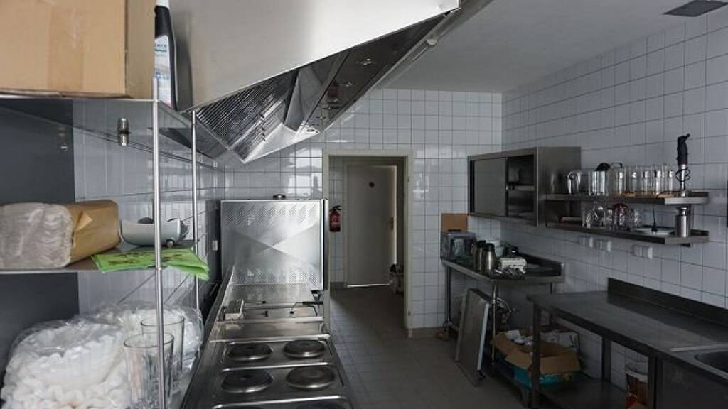 Eine Cafeterria ist leer und steht hier auch zur langfristigen Vermietung bereit.