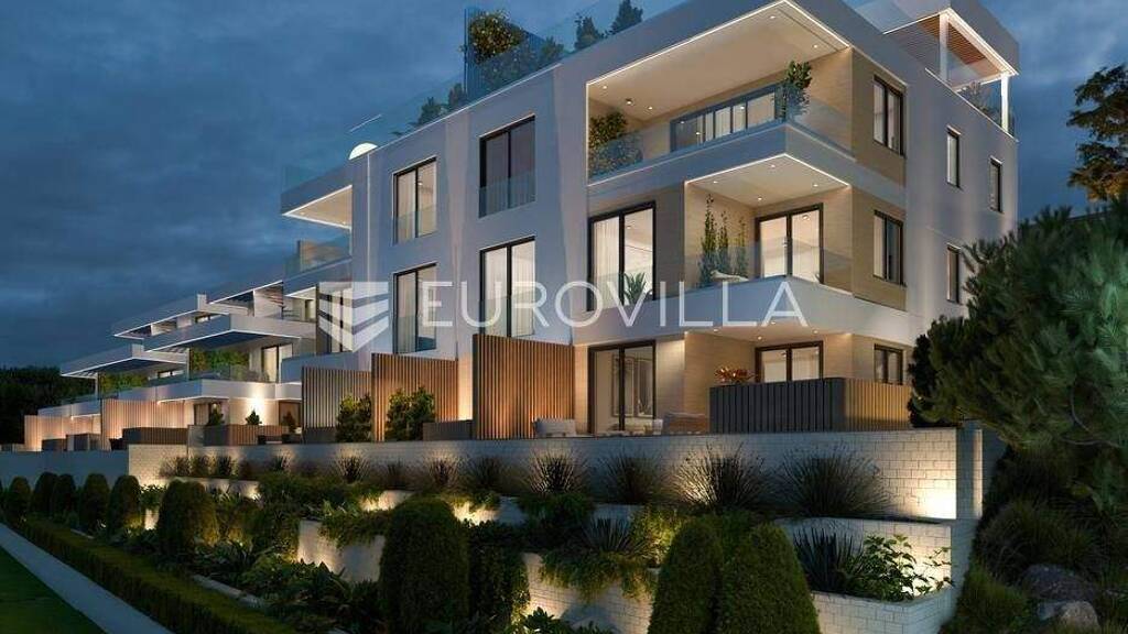Moderan dvosoban stan neto korisne povrsine 74,43 m2. Sastoji se od hodnika, dvije spavace sobe, wc-a, kupaonice, dnevnog boravka, blagovaonice, kuhinje, terase te prostranog vrta. Stanu pripada jedno vanjsko parkirno mjesto uz mogucnost kupovine dodatnog parkirnog mjesta. Izgradnja te sama oprema unutar stana je najviseg standarda, pored toga, investitor nudi uslugu opremanja apartmana i unutarnjeg uredenja prema najvisim standardima, s modernim dizajnom koji zadovoljava potrebe kupaca. Rezultat je luksuzno uredeni prostor, potpuno spreman za upotrebu ili iznajmljivanje. Iz stana se pruza neometani pogled na more a udaljenost plaze je samo 100 m.Investiranje s garantiranim povratom predstavlja kljucnu prednost ovog projekta. Investitor nudi mogucnost iznajmljivanja kupljenih apartmana u turisticke svrhe, preuzimajuci kompletan menadzment i usluge gostoprimstva. Na taj nacin, vlasnicima je osiguran povrat investicije bez potrebe za angazmanom na operativnim poslovima, jer se sve obavlja u njihovo ime, cime im se omogucuje siguran prihod od turistickog najma.Ovakav projekt je jedan od prvih ovog tipa na tom podrucju, a slicni koncepti uspjesno se primjenjuju sirom svijeta te ovo naselje predstavlja jedinstvenu investicijsku priliku na atraktivnoj lokaciji s velikim potencijalom za generiranje prihoda od turistickog najma i dugorocnu vrijednost nekretnine.Ciovo je idealna destinacija zahvaljujuci svojoj blizini povijesnog grada Trogira, koji je pod zastitom UNESCO-a, te povezanosti s kopnom mostom, sto ga cini lako dostupnim i vrlo atraktivnim za turiste.Vise informacija na upit.