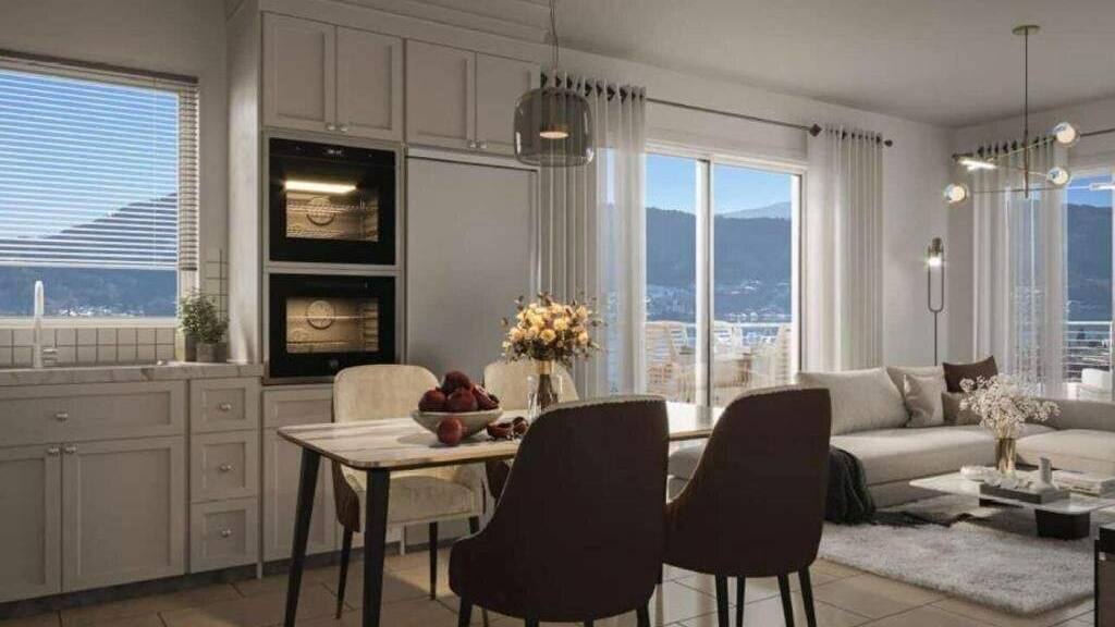 Auf 76,21 m² Wohnfläche entfaltet sich ein durchdachtes Raumkonzept mit großzügigem, offen gestaltetem Wohn-/Ess-/Kochbereich, der dank großer Glasflächen lichtdurchflutet ist. Von hier gelangen Sie direkt auf die ca. 28,08 m² große Terrasse, die nahtlos in den 245,78 m² großen Eigengarten übergeht, ein privates Refugium mit spektakulärem Seeblick.