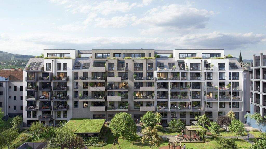 Die Wohnanlage verfügt über viele Wohnungstypen in unterschiedlichen Größen, vom Mikroapartment mit innovativen Stauraumlösungen bis hin zu Wohnungen mit Eigengärten. Die privaten Grün- und Freiflächen sind direkt vom Wohnzimmer aus erreichbar. Dank moderner Architektur ist es auch im Inneren der Erdgeschosswohnungen hell und freundlich. Eine Fußbodenheizung sorgt für komfortables Raumklima.