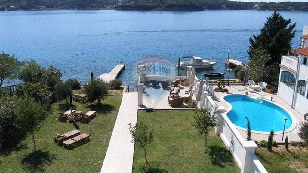Das komfortable Haus liegt in Supetarska Draga, auf der Insel Rab. Eine echte Rarität an der Kroatischen Adria: Das umfasste Grundstück von 880 m² ist direkt am Meer gelegen und verfügt über eigenen Strand, fünf Anlegestellen für Boote mit einem Tiefgang bis 2 Meter.