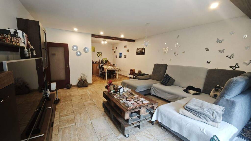 Wohnung 2 (ca. 115 m²): - 4,5 Zimmer, Küche, Bad - Gäste-WC - Terrasse und Balkon - Großes Bad mit Dusche, Badewanne, Doppelwaschbecken, Platz für Waschmaschine und Trockner - Dachgeschoss (ca. 90 m², teilausgebaut): - 2 Zimmer bezugsfertig - Badezimmer mit Dusche - 4 weitere Räume vorbereitet (Trockenbau, flexibel nutzbar) - Auf Wunsch kann das DG als separate Wohnung genehmigt werden