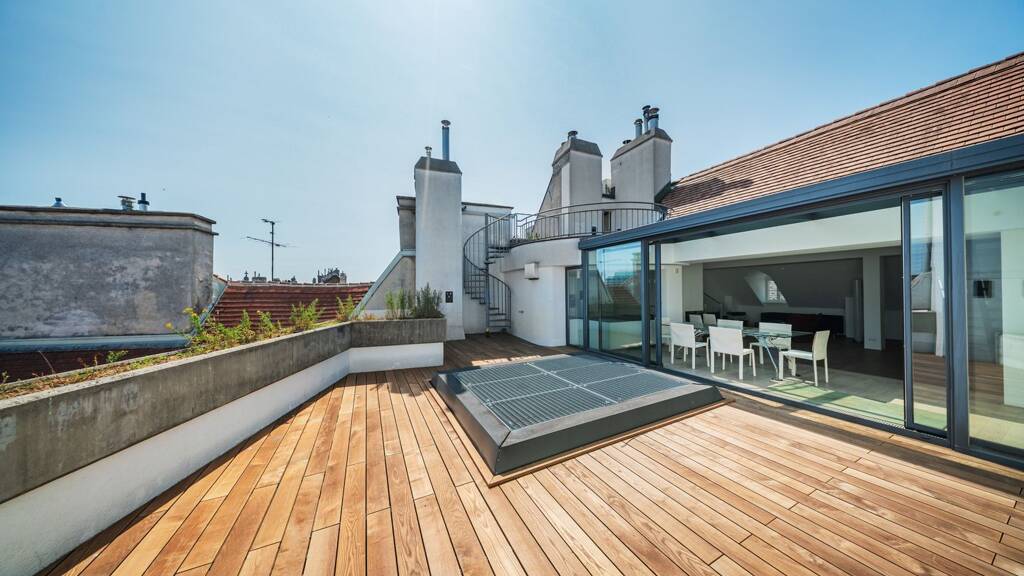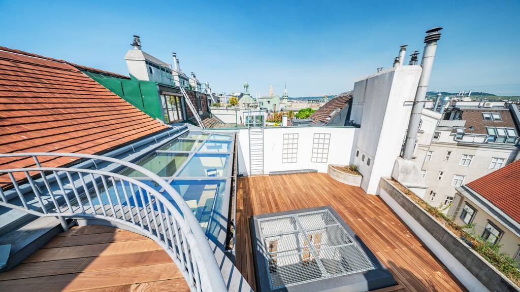 In zentraler Lage, mitten im 1. Bezirk gelegen, bietet diese moderne Dachgeschossmaisonette mit zwei privaten Terrassen eine perfekte Mischung zwischen dem lebendigen Leben der inneren Stadt und der Ruhe in mitten der eigenen Wohnung.