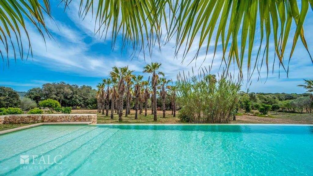 Diese wunderschöne Natursteinfinca bei Manacor liegt inmitten der Natur, bietet viel Ruhe und ist nur 10 Autominuten von einem fabelhaften Strand mit kristallklarem Wasser entfernt, im Südosten der Insel Mallorca. Die attraktive mallorquinische Immobilie wurde 2018 komplett renoviert und steht auf einem Grundstück von ca. 18.000 m2 mit Obstbäumen, Palmen und Olivenbäumen. Die bebaute Fläche von ca. 440 m2 verteilen sich wie folgt: Das Erdgeschoss besteht aus einem wunderschönen Eingangsbereich mit Glasdecke, einem Wohnzimmer mit Kamin, einer Küche, 2 Schlafzimmern mit Badezimmern en suite und einem Raum, welcher als Fitnessraum oder ein Spielraum genutzt werden kann. Die erste Etage bietet 2 Schlafzimmer, eines mit eigenem Bad und mit Balkon. Der charmante Aussenbereich besticht durch einen traumhaften Pool umgeben von Palmen und einen Garten mit Obstbäumen, der dazu einlädt, die wundervolle mediterrane Atmosphäre der sonnigen Insel Mallorca zu geniessen. Diese attraktive Finca in Manacor ist mit Klimaanlage, doppelt verglasten Climalit Fenstern, automatischer Gartenbewässerung und Steinzeugböden ausgestattet. Es handelt sich um eine idyllische Lage, die viel Privatsphäre und Ruhe bietet. Herrliche Strände mit türkisfarbenem Wasser sind nur wenige Autominuten entfernt.