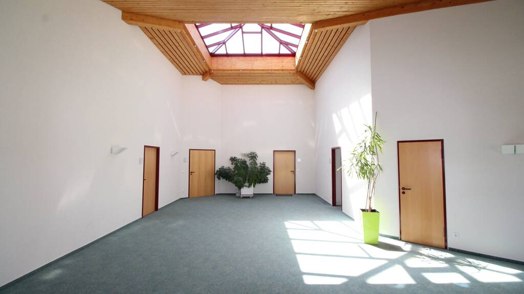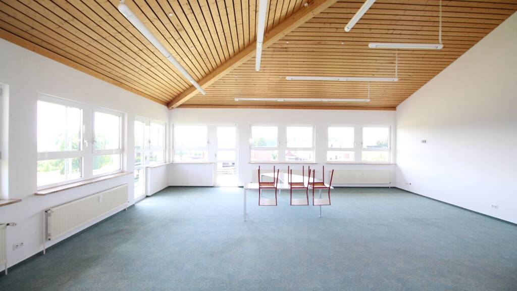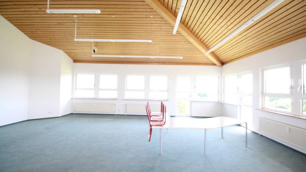 Der Büroraum im Obergeschoss ist ca. 51 m² groß, er ist unterteilbar.