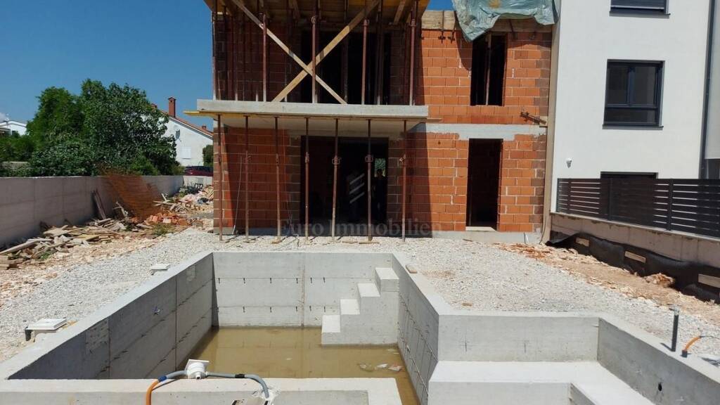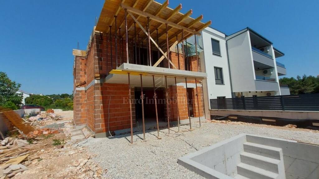 Dieses Projekt aus drei kleineren Gebäuden mit insgesamt neun Wohnungen liegt in einem ruhigen Teil von Medulin. Wohnungen im Erdgeschoss werden mit Pool und Garten verkauft. Zu jeder Wohnung gehören zwei Parkplätze. Das Gebäude wird mit hochwertigen Materialien gebaut, von einer Mauer umgeben, mit Alarmanlage und Videoüberwachung sowie einer ferngesteuerten Hoftür ausgestattet. Die Wohnungen werden mit elektrischen Jalousien, Sicherheitstüren, Klimaanlagen in jedem Zimmer sowie hochwertigen Keramik- und Sanitäranlagen ausgestattet. Geplant ist ALU Außentischlerei aus in Anthrazit Farbe. Das Gebäude befindet sich in der Roh Bau Phase, voraussichtlicher Einzugstermin ist der 1. Juni 2024. Die Wohnung befindet sich im Gebäude A, im Erdgeschoss. Es besteht aus einem Flur, einem Abstellraum, zwei Schlafzimmern, einem Badezimmer, einer Küche mit Essbereich, einem Wohnzimmer und einer überdachten Terrasse. Die Wohnung verfügt außerdem über einen 100 m² großen Garten und einen 25 m² großen Pool.