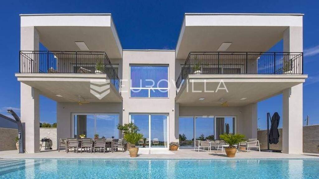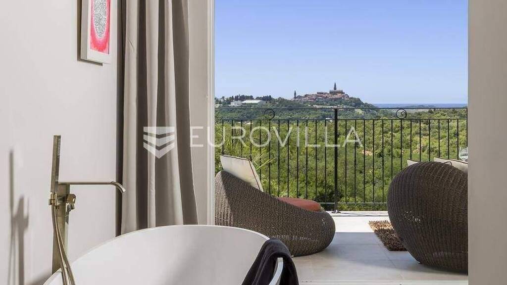 Istra, Buje, sezonski najam od lipnja do rujna luksuzne vile s 4 spavace sobe, 5 kupaonica, infinity bazenom 64m2 u blizini poznatih vinarija zapadne Istre.Navedena cijena odnosni se na tjedni najam.Ova vila nudi neusporediv luksuz, spajajuci prirodu s modernim komforom. Ova impresivna vila na cetiri etaze opremljena je dizajnerskim namjestajem i vrhunskim aparatima.Otvorena kuhinja i prostrani dnevni boravak, naglaseni bijelim nijansama i pozlacenim detaljima, stvaraju primamljivu atmosferu za opustanje i zabavu.Cetiri spavace sobe svaka imaju luksuznu kupaonicu. Beskonacni bazen na krovu pruza zadivljujuci panoramski pogled na more. Uzivajte u terapeutskoj bio-himalajskoj sauni. Kulinarski dozivljaji ukljucuju Kamado i Teppanyaki rostilj za objedovanje na otvorenom, uz premium usluge (dostava hrane, dorucak, privatni kuhar, ciscenje kuce) dostupne uz nadoplatu.Dodatni sadrzaji: djecje igraliste, igraonica, privatni parking i grijani bazen sa slanom vodom.Smjestena samo 10 minuta voznje od slovenske granice i 12 km od plaza Kanegre, Umaga i Novigrada nudi vrhunski pristup sadrzajima. Istrazite lokalne restorane i vinarije.Ovaj autenticni istarski bijeg obecava trajan dojam.Za vise informacija stojimo Vam na raspolaganju... Vise na eurovilla.hr, ID: 846416