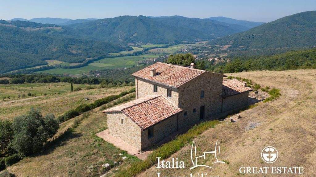 Exklusives Landhaus, in Umbrien in Città di Castello - "Genga" ist die Bezeichnung für ein elegantes Landhaus, das buchstäblich aus einem jahrhundertealten Bauernhaus in den Hügeln entstanden ist, etwa 550 Meter über dem Meeresspiegel gelegen und mit einem herrlichen Panoramablick über das gesamte Valle di Nestore. Das Landhaus hat eine Fläche von ca. 246 qm auf 2 Ebenen und ist im Inneren wie folgt aufgeteilt: Erdgeschoss: Die französischen Fenster im Erdgeschoss erhellen das Zentrum des Hauses, bestehend aus dem großen und gemütlichen Wohnzimmer, das von dem schönen Travertin-Kamin geprägt ist, der Küche mit direktem Zugang zum Garten, einem Arbeitszimmer, das als Doppelschlafzimmer genutzt werden könnte, und einem Badezimmer. Erster Stock: Drei Schlafzimmer mit zwei Bädern. Das Anwesen wird durch ein exklusives Grundstück von ca. 1,1 ha ergänzt.
