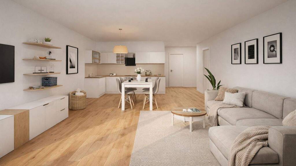 Die 2- und 3-Zimmer-Wohnungen sind auf zwei kleine Baukörper verteilt und werden nach dem aktuellen Stand der Technik, energieeffizient in klimafreundlicher Bauweise erstellt. Die Beheizung erfolgt durch eine Luft/Wasser-Wärmepumpe, während eine kontrollierte Be- und Entlüftung für ein angenehmes Raumklima sorgt. Zusätzlich wird die Nachhaltigkeit durch eine Photovoltaikanlage auf dem Dach unterstützt.