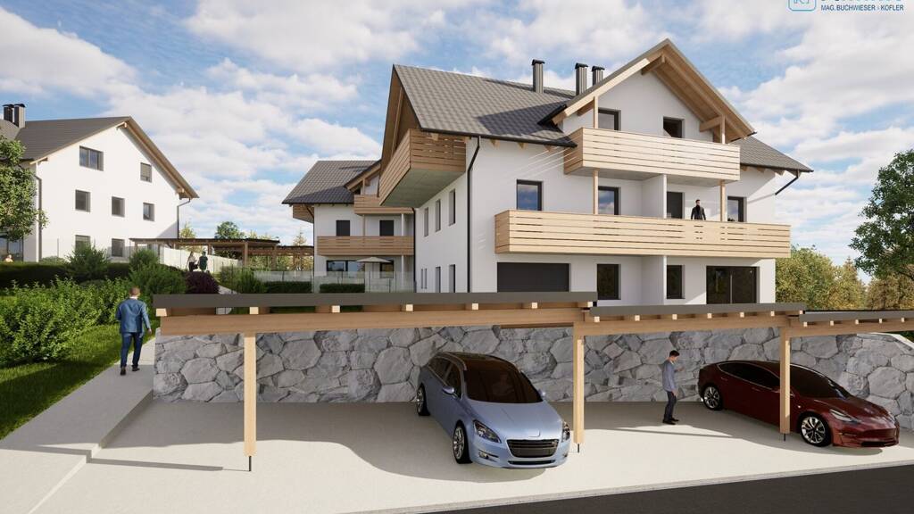 Pro Wohnung sind zwei überdachte Carports vorgesehen, zusätzlich stehen sechs Besucherparkplätze zur Verfügung.