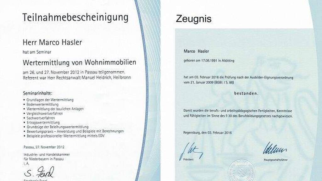 Unternehmensdaten – Links Weitere Angebote finden Sie auf unserer Webseite - Allgemein: www.immobilien-hasler.de Webseite - Immobilienmarkwertermittlung: www.immomarktwert.de Webseite - Immobilienleitfaden: www.immobilienleitfaden.com Gerne können Sie uns auch anrufen oder Sie schreiben uns ganz einfach eine E-Mail. Tel.: 08571/98345-0 Tel.: 08571/5679 Mobil: 0171/3607668 E-mail: info@immobilien-hasler.de Bei uns ist Ihr Objekt in besten Händen. Immobilien Hasler Immobilien Hasler Verkauf - Ankauf - Vermietung - Hausverwaltung Adolf-Kolping-Str. 3 84359 Simbach am Inn Tel. 08571/98345-0 Tel. 08571/5679 Fax: 08571/98345-20 Mobil: 0171/3607668 E-mail: info@immobilien-hasler.de unsere Internetseite: www.immobilien-hasler.de unsere Internetseite: www.hasler-hausverwaltung.de unsere Internetseite: www.hasler-immobilien.de unsere Internetseite: www.hausverwaltung-hasler.de unsere Internetseite: www.immo-inn.de unsere Internetseite: www.immobilien-hasler.com unsere Internetseite: www.hasler-hausverwaltung.de unsere Internetseite: www.immobilienannonce.de unsere Internetseite: www.immobilientrader.com Immobilienmarktwertermittlung: www.immobilienmarktwert.com Immobilienmarktwertermittlung: www.immomarktwert.de Immobilienleitfaden: www.immobilienleitfaden.com Immobilienleitfaden: www.hasleruniversity.com Immobilienleitfaden: www.hasleruniversity.de ImmobilienScout24: https://www.immobilienscout24.de/anbieter/profil/immobilien-hasler ImmoWelt: http://www.immowelt.de/profil/immobilien-hasler ImmoNet: http://www.immonet.de/immobilienmakler/408504.html Facebook: https://www.facebook.com/Immobilien.Hasler Twitter: https://twitter.com/ImmoHasler Kleinanzeigen: https://www.kleinanzeigen.de/pro/Immobilien-Hasler-Verkauf-Ankauf-Vermietung-Hausverwaltung Instagram Immobilien Hasler: www.www.instagram.com/immobilienhasler Instagram Immobilienleitfaden: www.instagram.com/immobilienleitfaden Instagram Immobilienmarktwert: https://www.instagram.com/immobilienmarktwert Instagram Hausverwaltung Hasler: https://www.instagram.com/hausverwaltunghasler Youtube: https://www.youtube.com/@immobilienhasler Matterport – Immobilien Hasler: https://discover.matterport.com/account/UfthsjWfXEM?edit=true unsere AGBs und die Widerrufsbelehrung für Verbraucher https://www.immobilien-hasler.de/agb.php unsere Datenschutzerklärung https://www.immobilien-hasler.de/datenschutz.php unser Impressum https://www.immobilien-hasler.de/impressum.php Herr Marco Hasler Geprüfter Immobilienkaufmann (IHK) Geprüfter Immobilienfachwirt (IHK) Zertifizierter Verwalter Bachelor Professional of Real Estate Management (CCI) ADA-Schein (Ausbildereignungsprüfung) (IHK) DEKRA zertifizierter Immobilienbewerter für Standardobjekte DEKRA zertifizierter Sachverständiger für Immobilienbewertung D1 für Standardobjekte mit DEKRA-Siegel