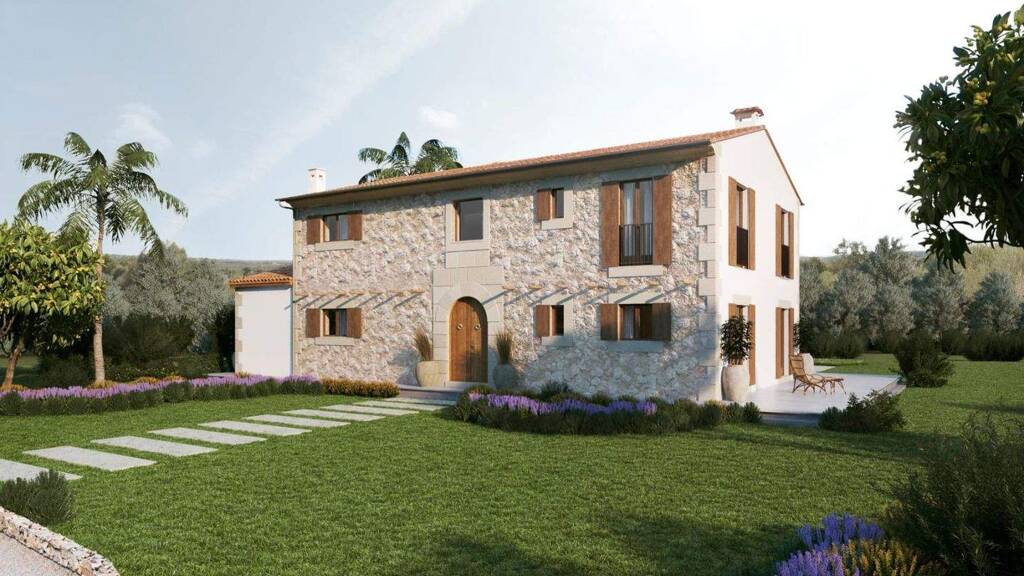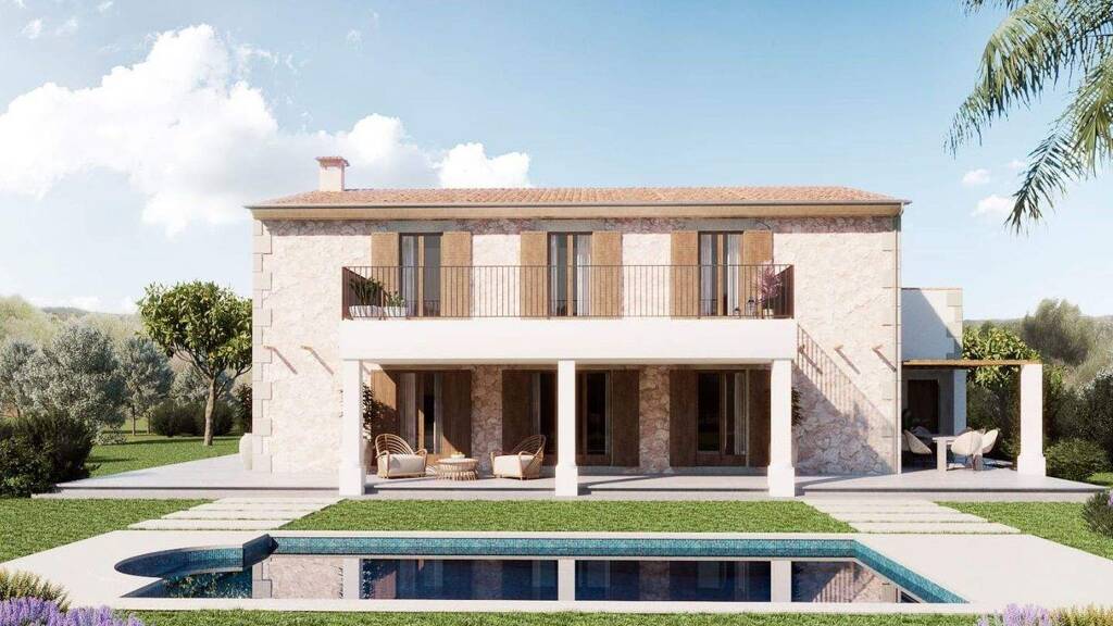 Zum Verkauf steht eine neu errichtete Finca nahe Santanyí, die modernes Wohnen mit mediterranem Ambiente verbindet. Das Anwesen liegt auf einem ca. 22.500 m² großen Grundstück und bietet viel Privatsphäre in typisch mallorquinischer Landschaft.
