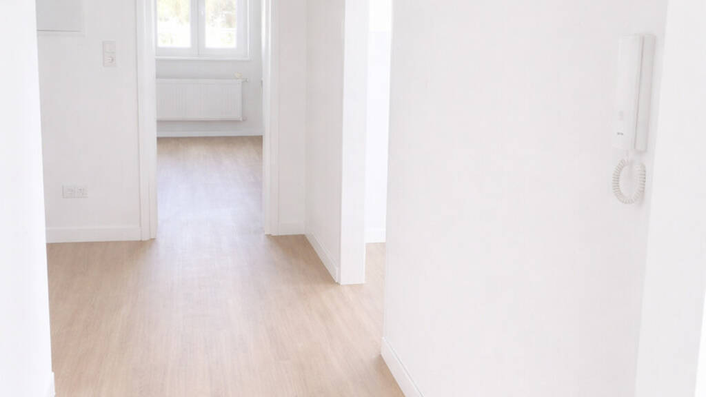 -Frisch renovierte Wohnung (Endphase der Fertigstellung) -Helle Wohnräume mit weiß gestrichenen Wänden -Moderner Bodenbelag in Holzoptik -Tageslichtbad mit Badewanne -Dachflächenfenster für zusätzliche Lichtverhältnisse -Neue bzw. überarbeitete Heizkörper -Vorbereitete Anschlüsse für Küche -Klare, moderne Raumstruktur -Ruhige Wohnatmosphäre im Dachgeschoss