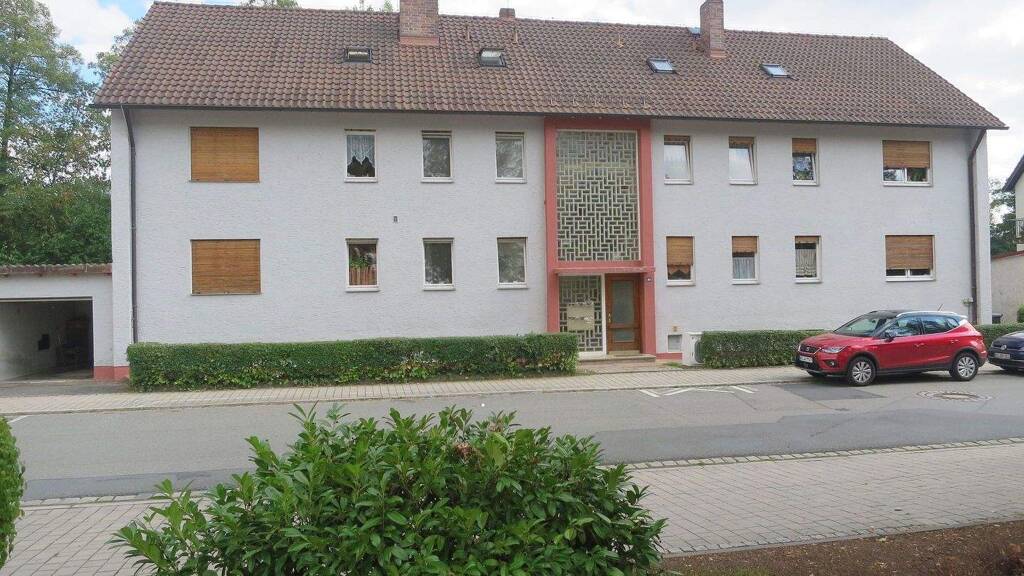 Die Wohnung befindet sich in einem gepflegten Zustand und hat einen guten Schnitt. Entlang der nordwestlichen Wohnhausseite führt die Straße zur Innenstadt. Auf der süd-östlichen Seite des Mietshauses befindet sich der Garten, der an die grüne Flussaue des "Kronach" Flusses grenzt. Die Innenstadt ist zu Fuß in 5 Minuten zu erreichen.
