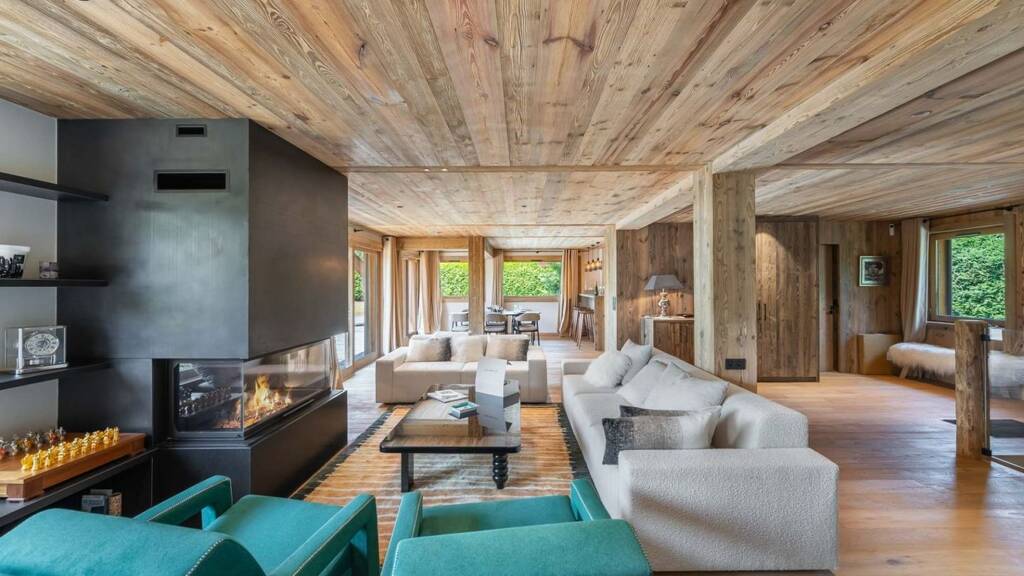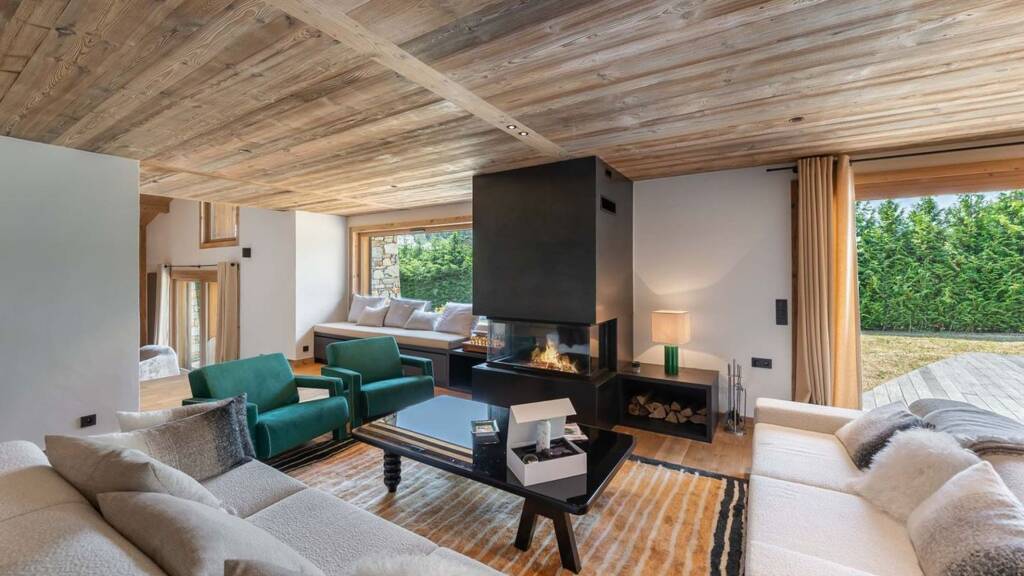 This fully renovated chalet, designed in a chic Alpine style with a total surface area of 370 m2 over three floors, is located less than a 5-minute drive from the centre of Megeve and the ski lifts.